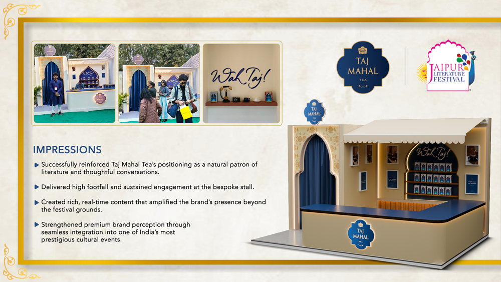 Taj Mahal Tea Literature Fest – Jaipur Brief Taj Mahal Tea partnered with the Jaipur Literature Festival as the exclusive tea sponsor, with the objective of creating a premium on-ground…