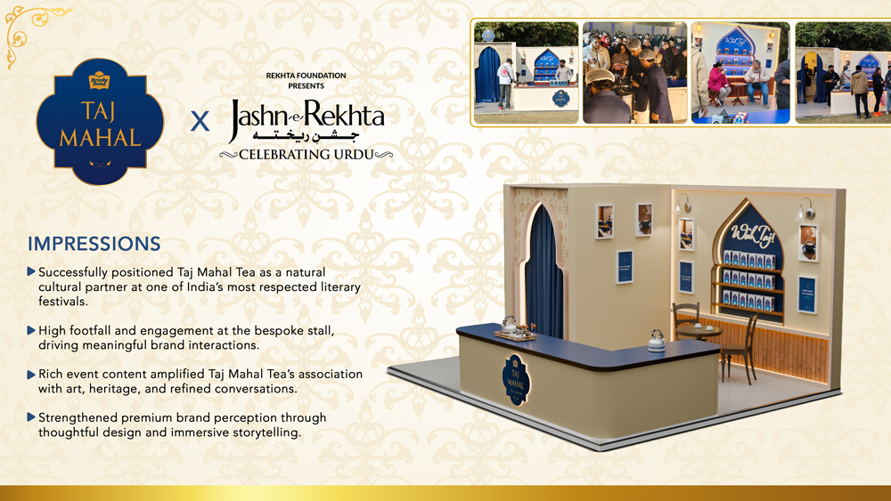 Taj Mahal Tea X Jashn-e-Rekhta Brief Taj Mahal Tea partnered with Jashn-e-Rekhta as the exclusive tea sponsor, aiming to create a premium on-ground presence while delivering end-to-end content coverage for…