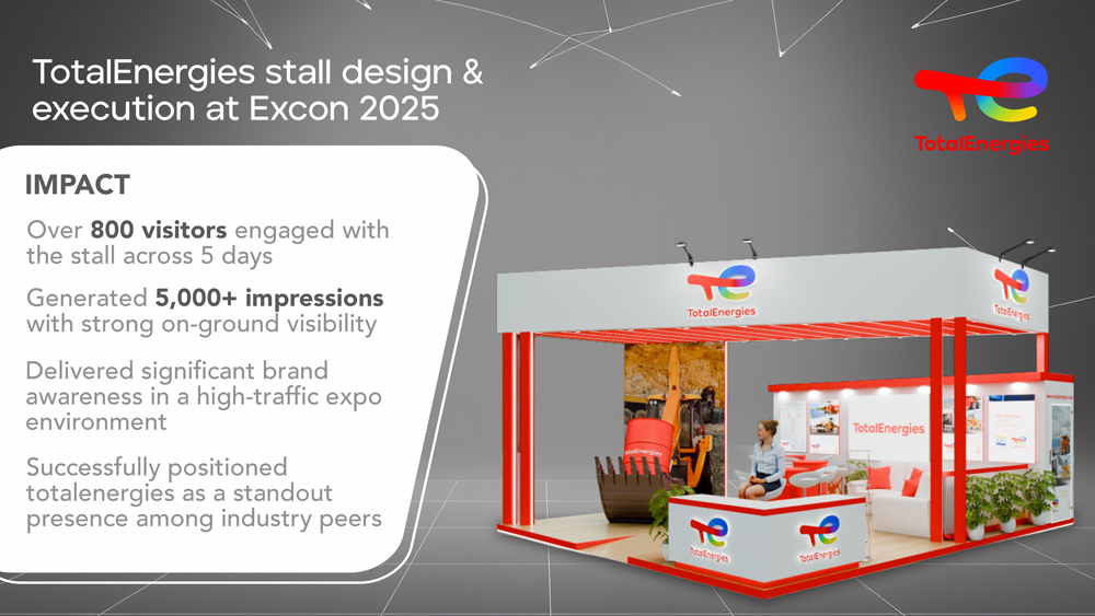 Total Energies - Excon Brief To design and execute a visually compelling, structurally sound stall for TotalEnergies at Excon, handling end-to-end design, fabrication, and installation—delivering a seamless on-ground brand experience. Insight…